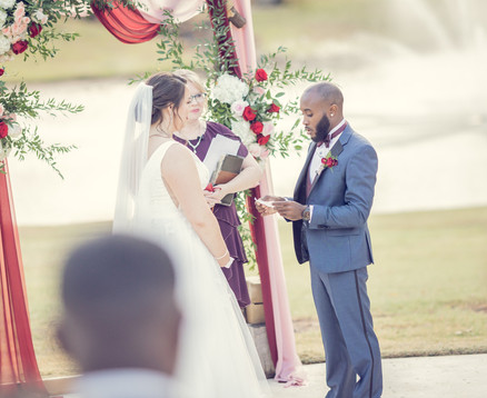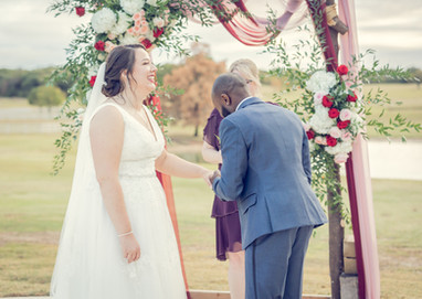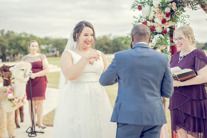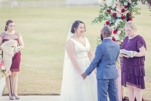 Fortunately, we didn't have to do that as the rain was forecasted to stop exactly in time for the ceremony and although they didn't get to have it in their original spot down in the grove of trees, they were able to have it in the circle just outside of the patio.