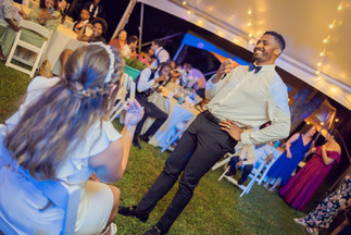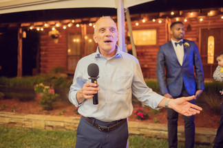 It was a great night for a party, and it even cooled down a bit toward the end. We got some "sunset photos" by the porch and I think the lights they had set up were a good substitute.